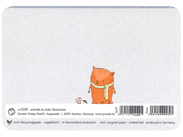 • detail Přání Gutrath G5109 KOČIČKA S DEŠTNÍKEM, otevírací přání s obálkou