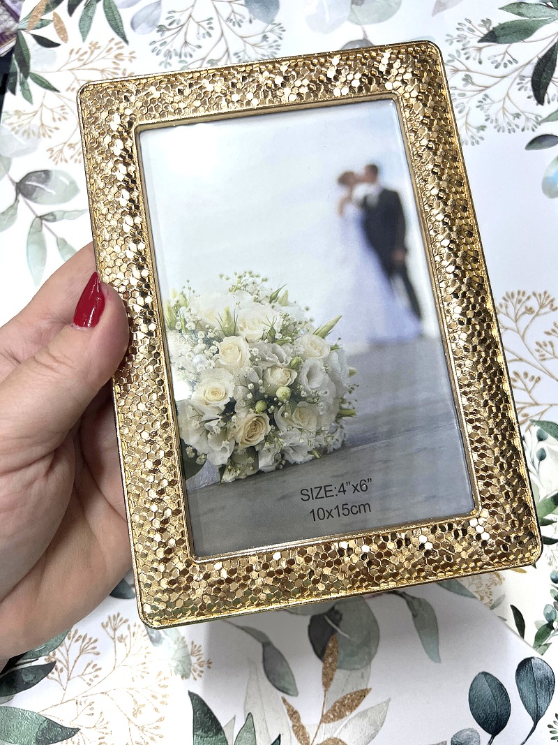 Luxusní svatební kovový rámeček se skleněnou výplní na fotografii 10x15cm, k postavení na výšku nebo na šířku.