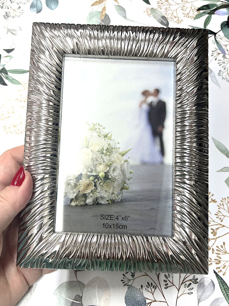 Luxusní kovový rámeček se skleněnou výplní na fotografii 10x15, k postavení na výšku nebo šířku.