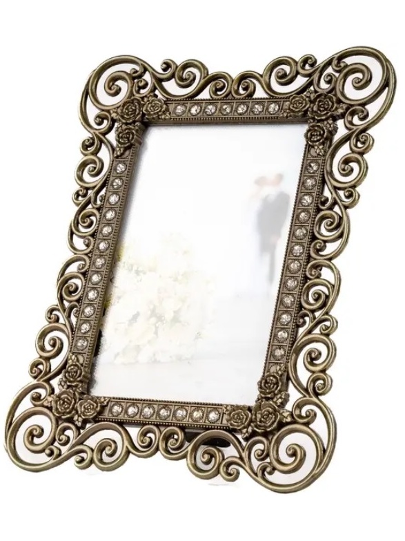 Kovový rámeček se skleněnou výplní na fotografii 13x18cm, k postavení na výšku nebo na šířku.