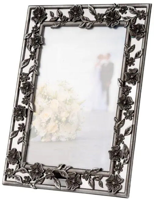 Kovový rámeček se skleněnou výplní na fotografii 13x18cm, k postavení na výšku nebo na šířku.