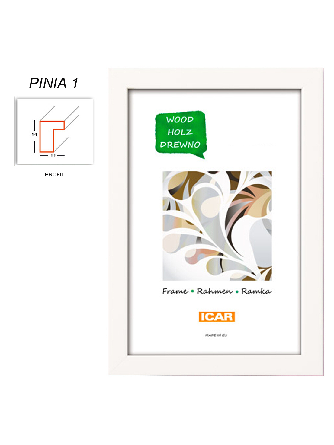 • detail Rámeček dřevěný Icar Pinia 01, 21x30cm, bílá