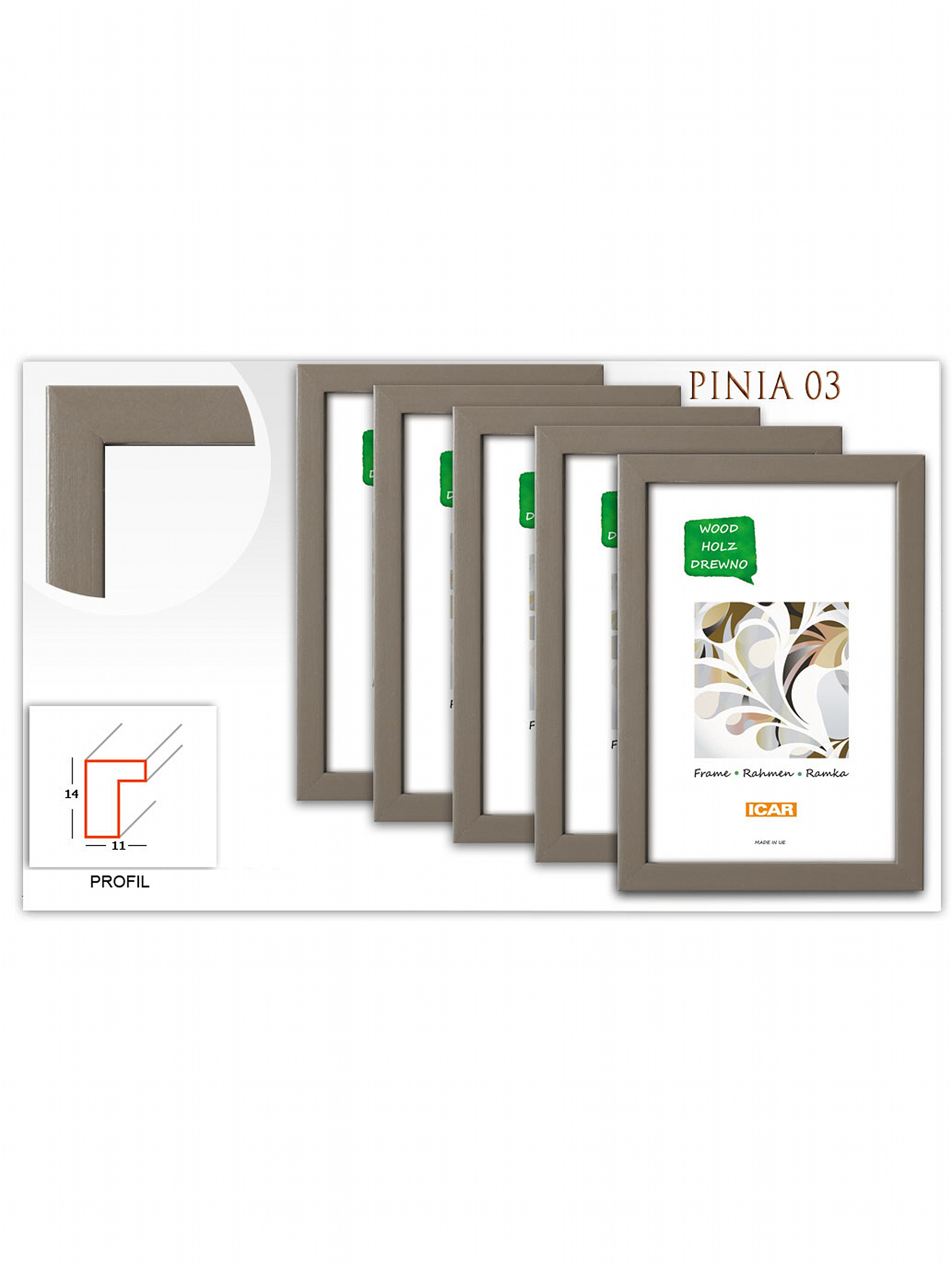 • detail Rámeček dřevěný Icar Pinia 03, 18x24cm středně šedá