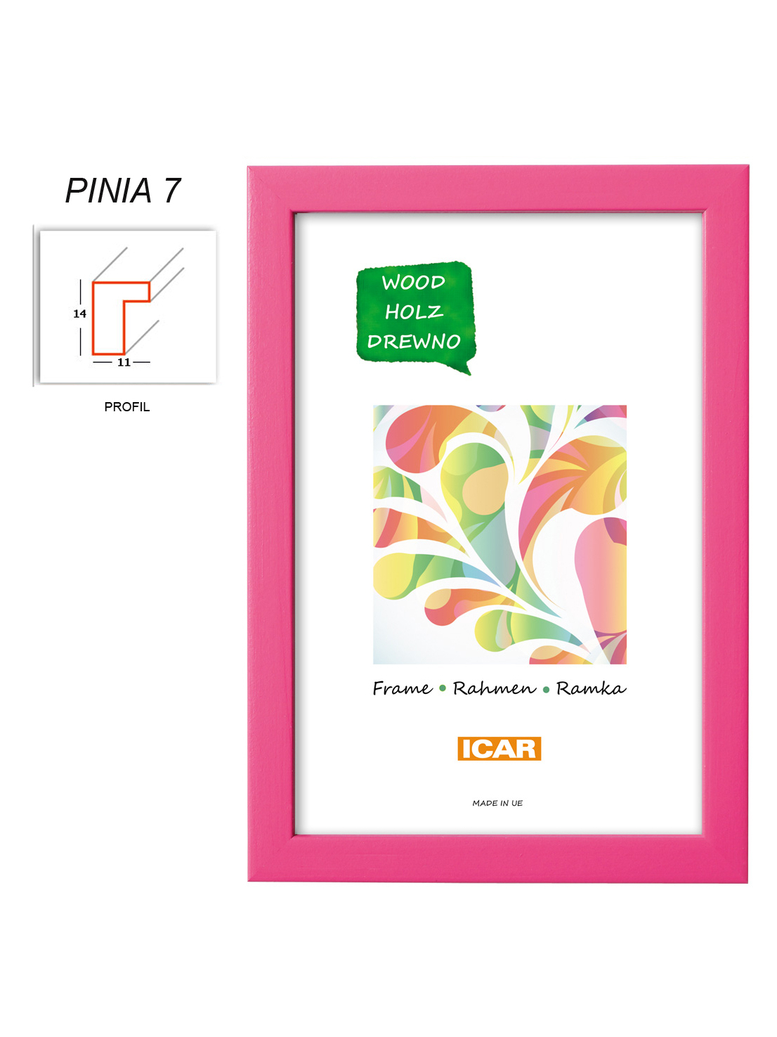 • detail Rámeček dřevěný Icar Pinia 07, 10x15cm tmavě růžový