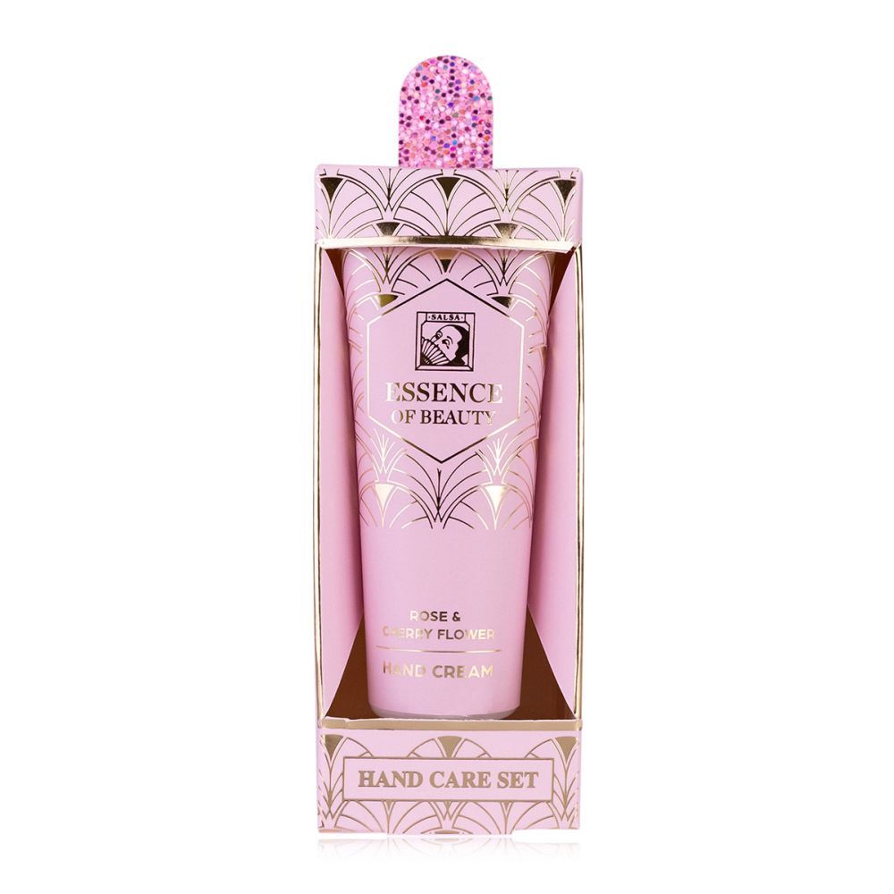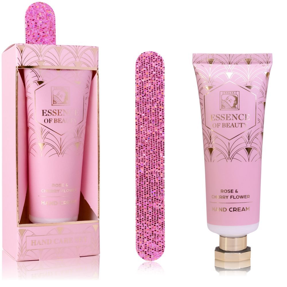 Oblíbená dárková sada krému na ruce a pilníčkem s podmanivou vůní růží a třešňových květů od německé firmy Accentra z kolekce Salsa.