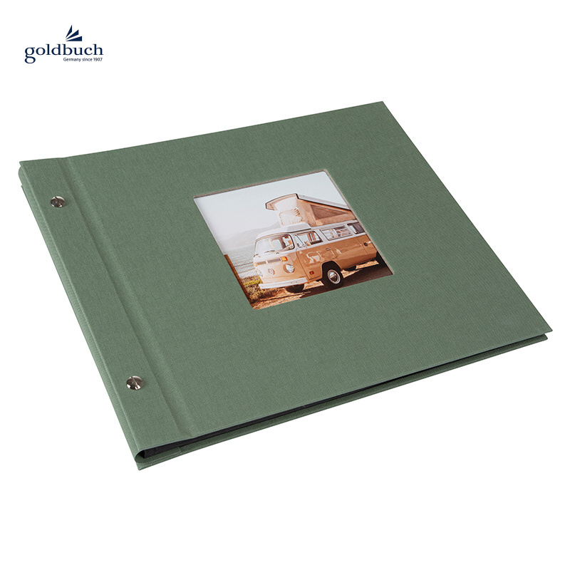 Fotoalbum se šroubkovou vazbou, černými listy, bavlněnými deskami s možností vložit vlastní fotografii na úvodní stranu. Album má 40 černých stran. Fotoalbum se můžete nastavovat náhradními listy, které se dají dokoupit v balení i se šroubky na prodloužení vazby. Mezi jednotlivými listy je vložen tenký pergamen, který chrání vaše fotografie před poškozením. Fotografie se do alba upevňují přímo nalepením, pomocí fotorůžků nebo oboustranných samolepicích podlepek či podlepkového rolleru.