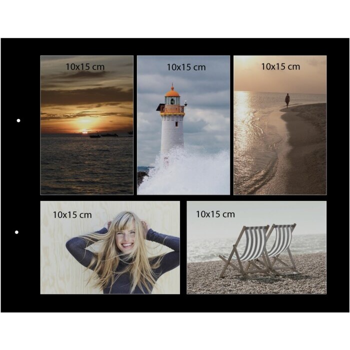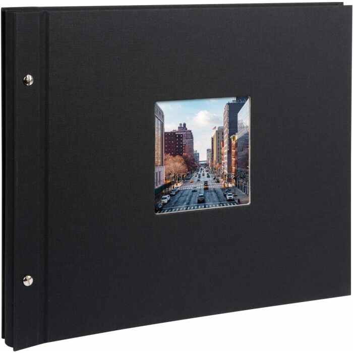 Fotoalbum se šroubkovou vazbou, bavlněnými deskami s možností vložit vlastní fotografii na úvodní stranu. Album má 40 černých stran. Fotoalbum se můžete nastavovat náhradními listy, které se dají dokoupit v balení i se šroubky na prodloužení vazby. Mezi jednotlivými listy je vložen tenký pergamen, který chrání vaše fotografie před poškozením. Fotografie se do alba upevňují přímo nalepením, pomocí fotorůžků nebo oboustranných samolepicích podlepek či podlepkového rolleru.