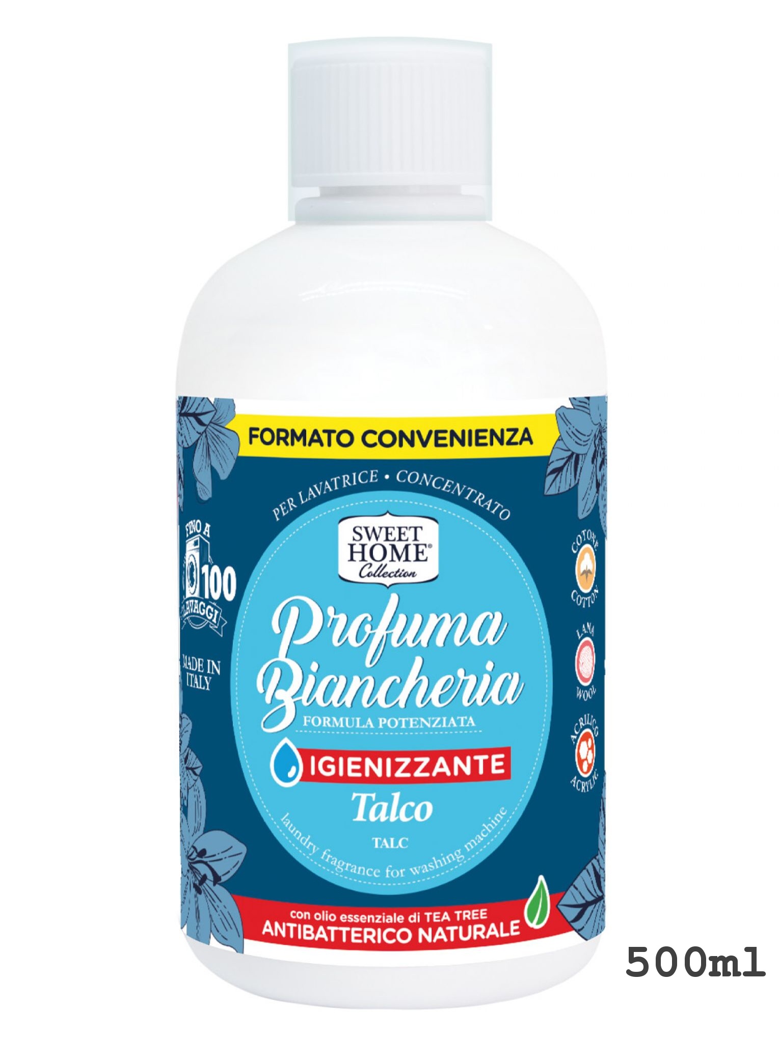 Koncentrovaný parfém do pračky Sweet Home Collection Talco daruje prádlu jedinečnou intenzivní dlouhotrvající pudrovou vůni s květinovým buketem. Parfém proniká hluboko do vláken a prádlo tak zůstává svěží a voňavé po velmi dlouhou dobu. Parfém na prádlo Sweet Home Talco neobsahuje změkčovadlo, proto je vhodný na všechny druhy tkanin, také na vlnu a syntetiku. Ideální pro prádlo sušené následně v sušičce prádla, kde se nedoporučuje aviváž. Esenciální olej Tea Tree obsažený v parfému plní antibakteriální funkci.