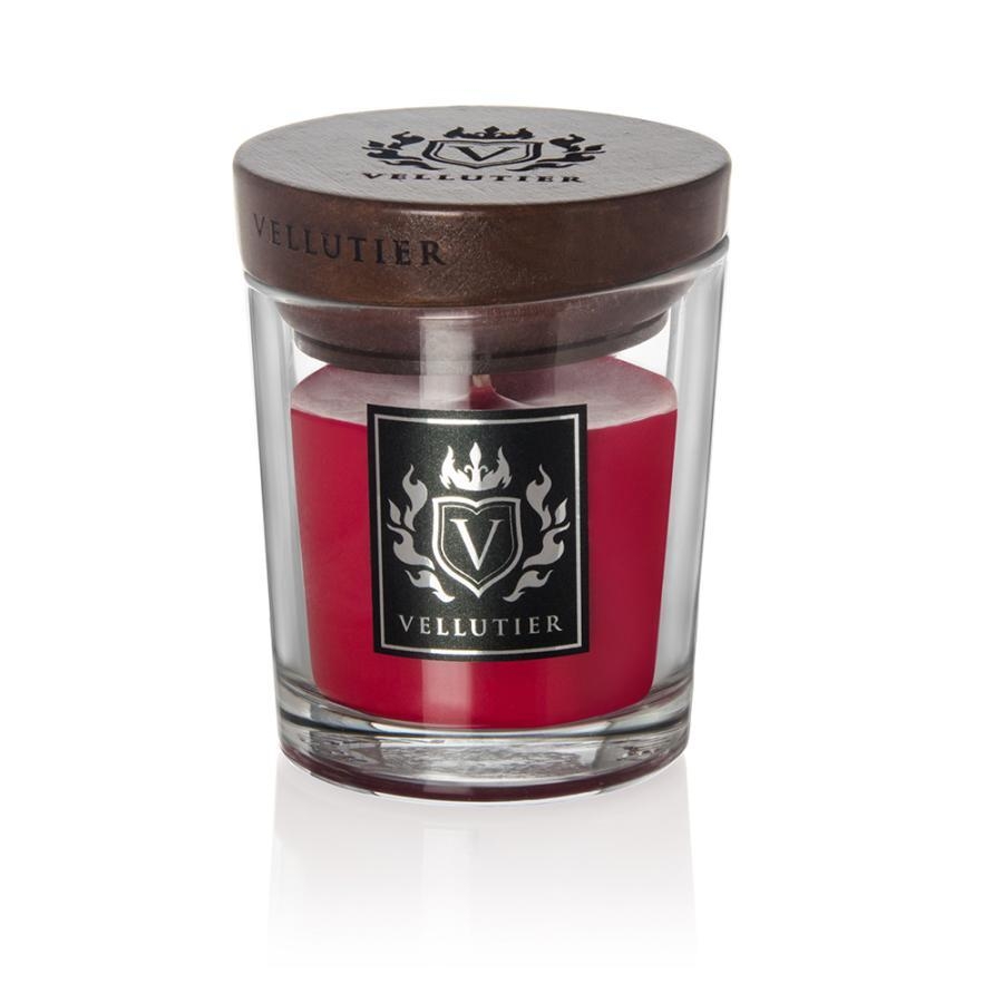 Sofistikovaný tvar svíčky s charakteristickým dvojitým výbrusem, tvoří dokonalý designový kousek společně s víčkem z pravého dřeva. Heraldické logo vyryté do dřevěného víčka zdůrazňuje jedinečnost a ušlechtilost použitých materiálů. Unikátní receptura vosku vzniklá ve Velké Británii založená na řepkovém vosku krásně vypadá, ale přirozeně voní a bezchybně hoří. Svíčky Vellutier májí speciální bavlněný knot s příměsí nejkvalitnější Egyptské bavlny, umožňující čisté hoření.