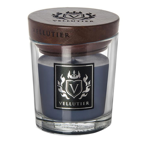 Designově propracovaná svíčka v oválné skleněné váze s charakteristickým šikmým výbrusem je precizně sladěný s dřevěným víčkem, který je zdobený heraldickým logem. Ručně odlévané svíčky Vellutier obsahují 100% přírodní řepkový vosk jemné sametové konzistence. Unikátní knot je vyroben s příměsí egyptské bavlny a umožňuje svíčce hořet čistým plamenem.