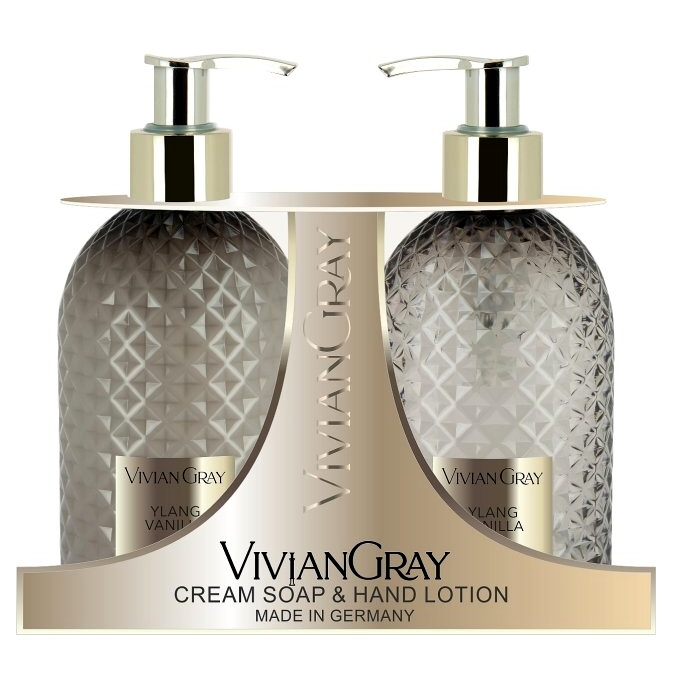 Luxusní SET Tekuté mýdlo a Mléko na ruce Vivian Gray CRYSTAL GREY Ylang a Vanilka, 2x300ml. GEMSTONE GREY.