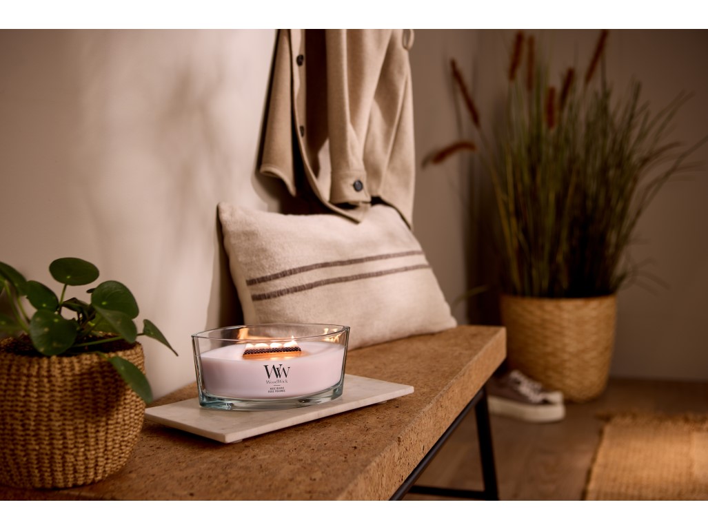 Loď je nejvýraznějším provedením WoodWick a smyslovým středobodem prostoru. Její protáhlý tvar a široký dřevěný knot vytvářejí intenzivní, hřejivý zvuk praskajícího ohně, který okamžitě přitahuje pozornost a uklidňuje. Organický design zesiluje světelný i zvukový efekt a proměňuje zapálení svíčky v hlubší rituál. Prostor se ztiší, tempo zpomalí a atmosféra získá přirozenou hloubku. Loď je ideální pro chvíle, kdy chceš být skutečně v přítomnosti a nechat se unést klidem, teplem a pocitem spojení s přírodou. TIP: Pro rovnoměrné hoření nechte svíčku při každém zapálení rozpustit až ke kraji.