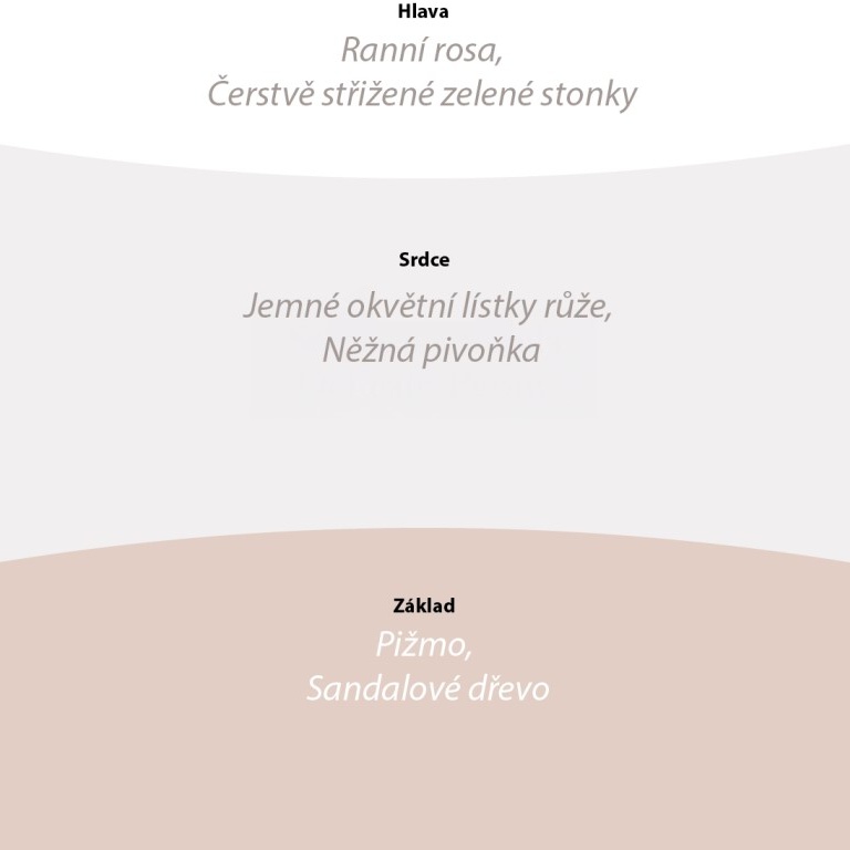 Jemné tóny černého rybízu a hebkého santalového dřeva doplňují vůni inspirovanou anglickou růžovou zahradou. Přináší okamžik elegance, květinové něhy a pohody.