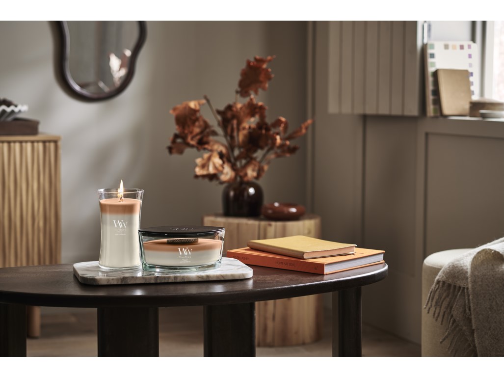 Velká váza WoodWick je stvořená pro chvíle, kdy chceš zpomalit a dopřát si klid inspirovaný přírodou. Díky svému objemu a ikonickému dřevěnému knotu vytváří hluboký, hřejivý zvuk praskajícího ohně, který uklidňuje a přirozeně ztišuje prostor. Organicky tvarovaná skleněná váza podporuje rovnoměrné hoření a umožňuje vůni pozvolna zaplnit místnost. Zapálení svíčky se mění v rituál, který pomáhá odpoutat se od ruchu dne a znovu se ukotvit v přítomném okamžiku. Velká váza je ideální pro dlouhé večery a otevřené prostory, kde chceš cítit teplo, harmonii a klid, které přináší propojení s přírodou. U svíček Trilogy se tři vrstvy vosku během hoření postupně propojují a plynule přecházejí jedna v druhou, čímž vzniká proměnlivý, ale harmonický smyslový zážitek. TIP: Pro rovnoměrné hoření nechte svíčku při každém zapálení rozpustit až ke kraji.