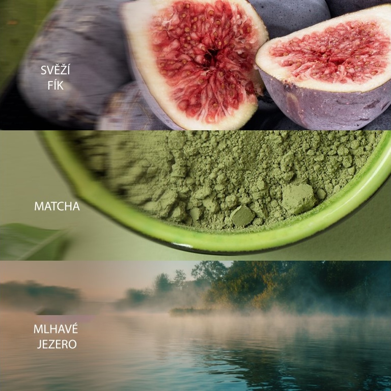 Tři vůně, tři okamžiky přírody: šťavnatá fíková dužina s cedrovým dřevem, citrusově bylinkové srdce z matcha a osvěžující jezerská mlha. Každý vosk se postupně rozvíjí a přináší klid, svěžest a přírodní eleganci.