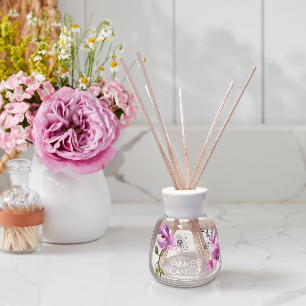 Yankee Candle Signature Reed Diffuser Wild Orchid (100 ml) je dokonalou volbou pro celodenní provonění a zároveň dodává vašemu interiéru nádech stylu díky atraktivnímu ručně ilustrovanému designu a opakovaně použitelné skleněné nádobce.