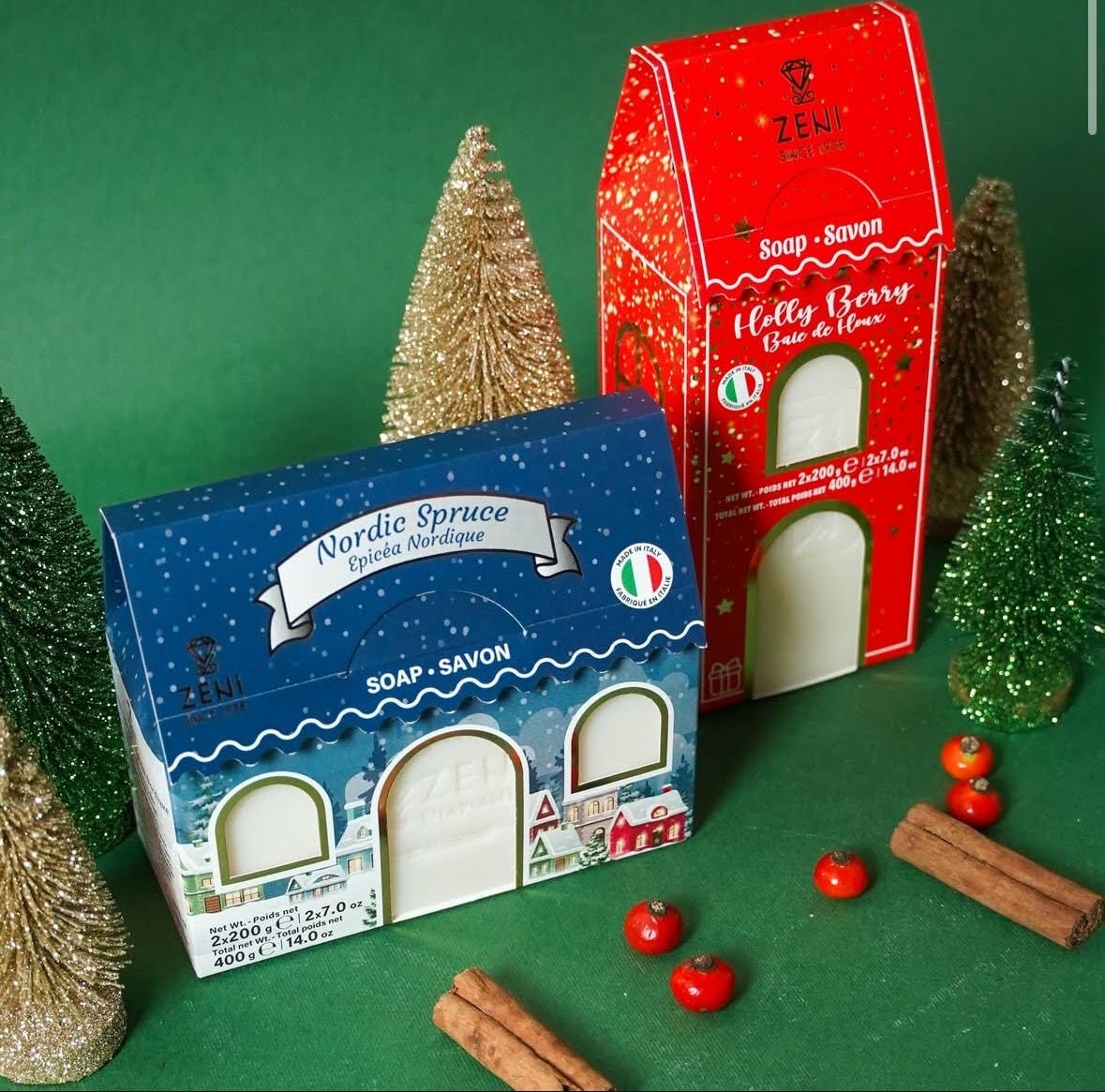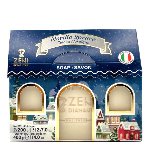 Dárková sada tuhých mýdel 200g od italské firmy Zeni Diamante s vůní severského smrku.